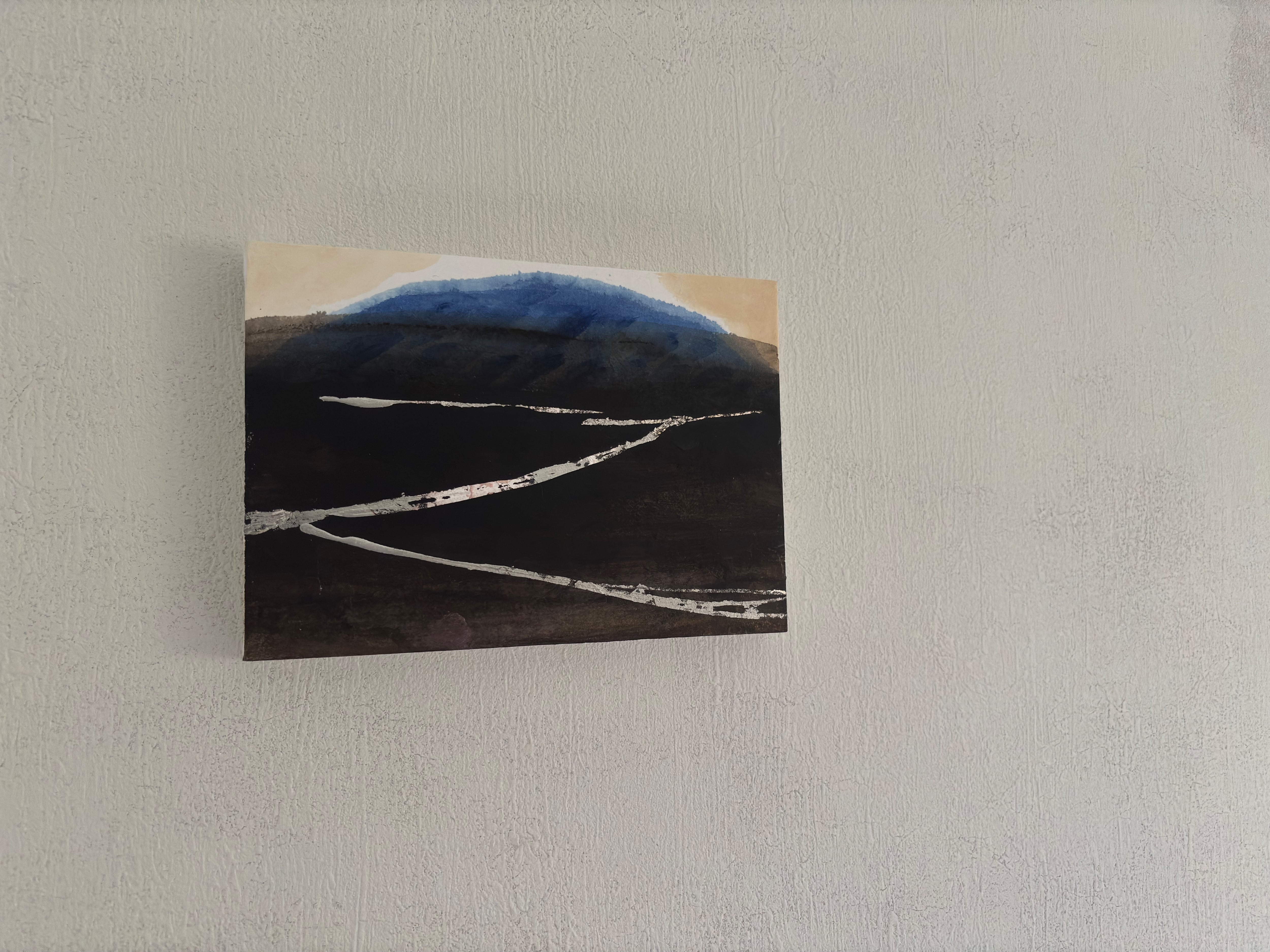 パネルに韓紙、アクリル、銀箔